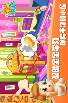 宝宝真的很淘气,他们喜欢探索新鲜的事物,于是总是把公主的城堡搞得一团糟,现在就由你来扮演妈妈来和萌萌的宝宝一起帮助公主整理房间吧,让我们的城堡再次闪耀!操作对应的工具以去除灰尘、污渍和蜘蛛网,并将每个物品摆放到正确的位置。如果遇到困难不知道如何下手,可以点击提示按钮获取帮助哦!